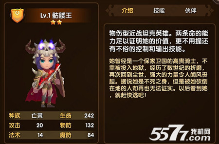点评:骷髅王绝对是非常值得入手的英雄,并且只需要战魂*30,入手难度也比较低,建议玩家搭配【死亡骑士】和【通灵院长】一起上阵,不过死亡骑士的获得难度较大,玩家可以先使用通灵院长进行搭配,后期再换成死亡骑士。