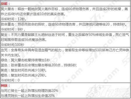 小编总结:点控、肉T带暴击,可以说是半肉半输出,复生技能非常恶心,死了站起来再战,四技能吸血光环必然是后期亡灵阵容核心,所以准备打造亡灵战队的朋友们赶快入手一个吧,值得培养哟~