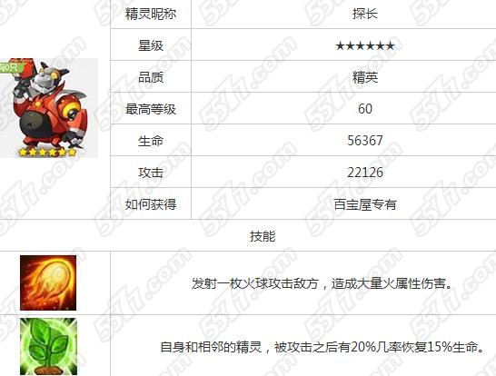 全民精灵探长是一位属性级别比较高的精英级的精灵伙伴,是百宝屋专有精灵,探长的最高等级为60级,生命值为56367、攻击力非常的高,22126的攻击力是不是吓着了你呢。