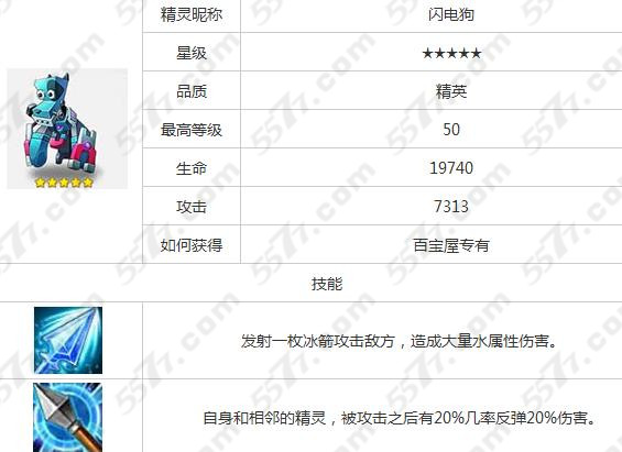 精灵精灵闪电狗的最高等级是50级,生命值为19740、攻击力为7313