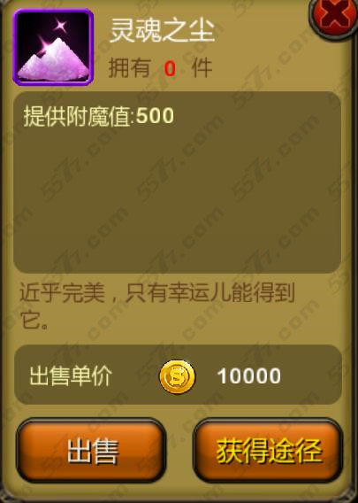 天天英雄灵魂之尘是紫色材料道具,在游戏中平民级玩家想要获得灵魂之尘是比较难的,不过对于土豪级的玩家来说是件比较简单的事情,天天英雄灵魂之尘可以提供500点附魔值,下面小编来分享下关于天天英雄灵魂之尘获得方法介绍,希望能帮助到大家。