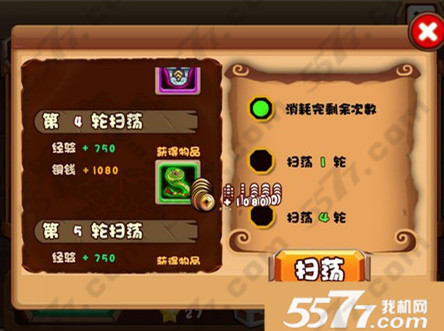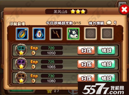 每个关卡每天可以挑战和扫荡次数为15次,扫荡必胜利,直接获得经验铜钱和道具。