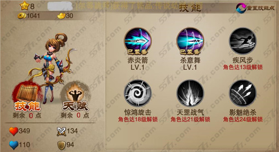 赤炎箭:远程技能,向敌人射出一支赤炎箭。1级造成120%+30的伤害,随着等级的提升伤害值增加。
