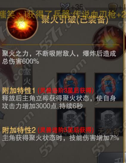 特性2:主角获得聚火状态时,技能伤害增加7%
