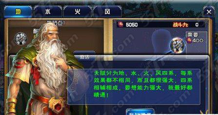 天赋系统分为4个分支,地,水主防御,火,风主攻击。天赋可以提高战力。