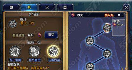 水分支主要技能体现在降低敌人治疗效果,打击远程,在对方有祭祀,高攻血少远程时可以激活。
