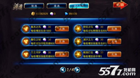 3. 玩家可以花费一定数量的金币猎魂,猎魂有几率获得绿色,蓝色,紫色,金色剑魂。