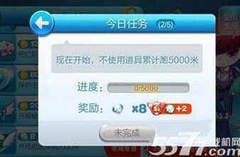 而对于这个任务唯一需要注意的地方就是,不要使用道具,特别是有些开局就使用的,大家不要手快哦,可以慢点,让后发挥自己的正常水平就好了,一次不过大家可以继续下一次就好啦,然后累计跑过5000,这个任务就完成了!