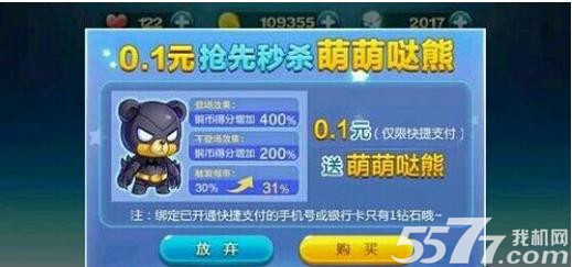之前天天酷跑0.1元可以购买50个钻石和一只宠物,现在这个活动又改变为最新的精灵了,也就是0.1元秒杀萌萌哒熊。那么玩家遇到这样的情况应该怎么去开通快捷支付,获得超值奖励呢?