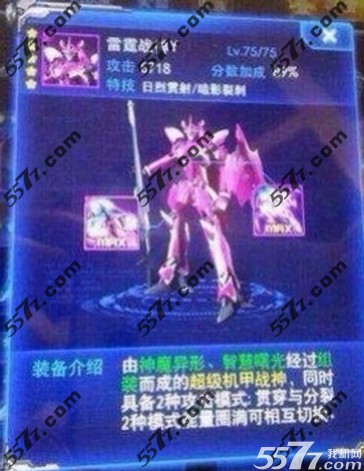 简介:由神魔异形、智慧曙光经过组袭而成的超级机甲战神,同时具备2种攻击模式,贯穿与分裂2种模式能量圈满可相互切换!