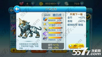 特殊技能:任意奖励关卡中得分4倍;开局冲刺700米;终极冲刺