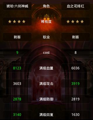 作为刺客 攻击首为重要但是我们看到的六剑跟大热的绯红有点攻击的差距,但我们发现这几百的攻击属性其实比不上血量的2千和回复的1500 这么说来 六剑是比绯红更加有生存能力,在刺客里面装备的重要性占到很高 (辉者就是一个例子)