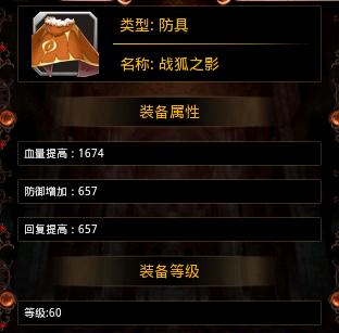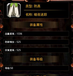 下面是六剑的防具 没有加攻击的防具 而且装备的效果会使血量低于50%时 受击的概率降低,这个装备正好符合六剑 但是六剑的输出远远不及