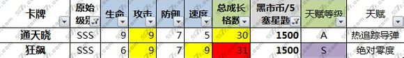 狂飙SSS总格数31,9攻9速,S天赋绝对零度,是不少豪都强烈推荐的神卡,性价比超越很多3000的高档卡牌!