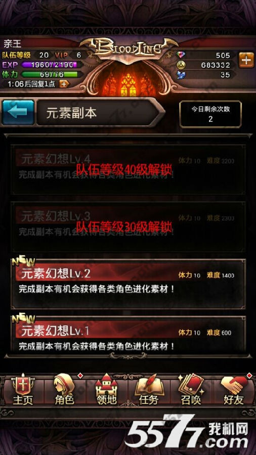 元素幻想每天可闯2次,每次消耗10点体力,难度被系统定位640,难度和迷失乐园要一样,需要玩家拥有不是太差的卡牌都能过,太差的卡牌需要搭配药剂也能过,完成血族元素幻想活动副本,可获得各类角色进化素材。