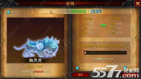 祝福值下面写着重置时间?算了下时间,是凌晨4点,看来进化坐骑需要在4点前进化完毕,不然存起来的祝福值就没了,进化额外的成功率也就没了。