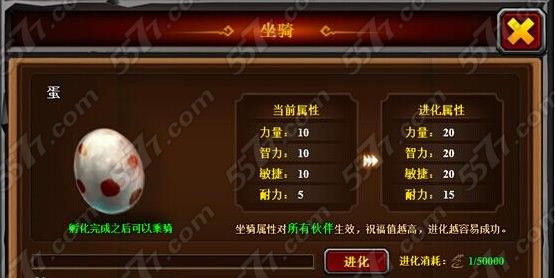 原来坐骑每次进化时都有几率直接进化到下一级坐骑,怪不得蛋被我抽了几下,经验槽还没满就孵出了小驴,看来我的运气还不错哦。