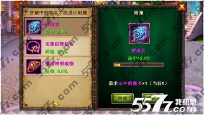 可以对穿戴在身上的紫色以上装备附魔,每件装备可以附指定的属性