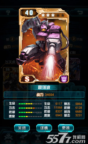 5、角色搭配推荐:卡牌的人物关系定义为声波和洪灾,但由于这两张卡牌并不出色,简易不与情感关系的角色搭配。而在同一小队内,放置一名同样拥有小队攻击的S级队友,如擎天柱,保证两人在同一回合的齐射,可以灭掉对面小队的后排两人。
