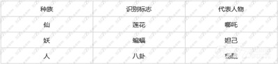 封神英雄榜中一共有三大种族:仙、妖、人。