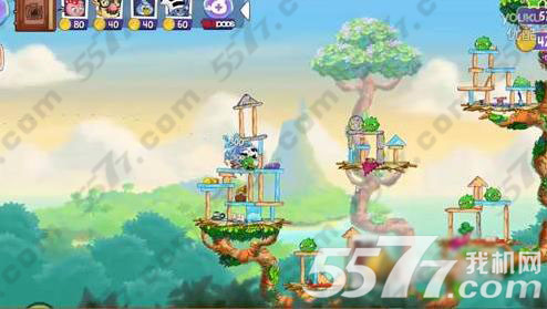 我们在关卡开始的时候可以使用的小鸟是薇璐,我们利用薇璐的旋转攻击特点去攻击最左边的绿猪,然后旋转穿透左边的建筑继续向前攻击,就可以将右下角的绿猪和建筑清理掉了,接着使用第二只小鸟思黛拉,攻击右上角的绿猪,然后利用思黛拉的反弹能力攻击中间的绿猪,触碰到中间的石头,石头向下移动的时候就可以将左下方的绿猪清理,到了这里我们就可以将场景中的所有绿猪都清理掉了,顺利通关并获得三星奖励。