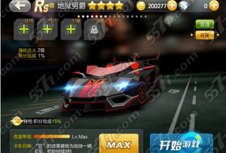 最大速度:457Km/h;加速度:14.9Km/s;节油效率:34.6KM;金币加成:+10.5%;重量:700.00kg;变道速度:+8.5%;里程分加成:+10.5%