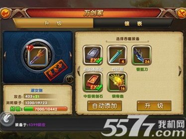 升级:所有装备都可在万剑冢升级,等级越高的装备能力越强,万剑冢的等级越高,装备可升的等级越高