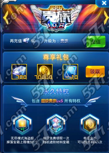 玩家充值的vip贵族6特权是永久的,所以小编建议大家多多的充值钻石,福利也是特别的丰厚。