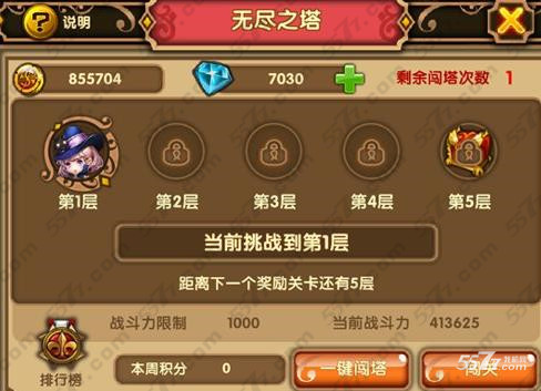 2、同时每周刷新后,每五层通关后,第五层会获得海量的绑钻和金币