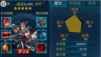 3星特技“龙魂”:自身和麾下士兵攻击时将伤害的60%转化为自身气血
