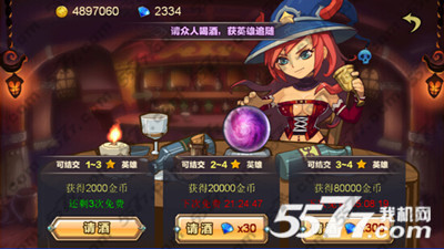 1、普通麦酒,花费1W金币,可以随机招募到1~3星的英雄