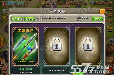 1、铁匠铺中可升级装备也可以铸造新装备,点击“制造”即可进入制造系统,制造装备需要消耗铁,铁可在铁矿中获得。
