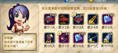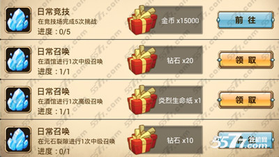 2、玩家点开游戏中的奇遇,登陆领奖中也有钻石奖励,除了钻石更有很多好装备以及英雄生命纸、技能卷轴。