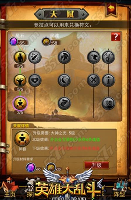 专一型:指专心修炼某一属性天赋不动摇,暂不点其他天赋,最终大成者。比如上述小编说的主修速度的玩家,明明等级没我高,阵型等级也不如我,但同样的英雄速度比我快好几十,在PVP这种讲究速度的地方,占尽便宜,不服不行!推荐天赋:血涌I、血涌II、强力攻击I、风速I、风速II、破甲I,前期不建议先升级抗性。