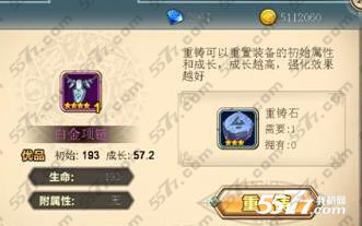 重铸石的作用就是玩家可以通过游戏中的铁匠铺来重铸自己装备的品级,重铸每次消耗一个重铸石,高品级的装备属性会更好哟!