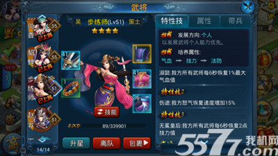 4、武将升星:在武将系统中消耗一定数量的将魂值可以提升武将星级,从而解锁武将特性技来提高武将战斗力