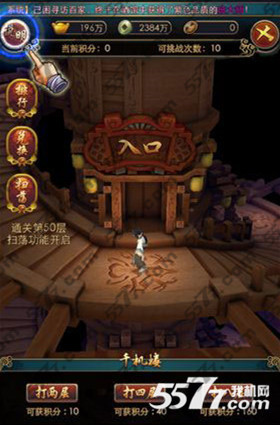 通关千机楼50层后,千机楼扫荡功能开启!每次扫荡可选择两层连战打4次或者四层连战打2次!
