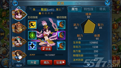 点评:甄姬是军团型武将,天生拥有比较高的闪避,同时和郭嘉一样,也可以给我方所有武将回复技力值。想想如果甄姬和郭嘉同时上场,那武将的技力还怕不够用吗?