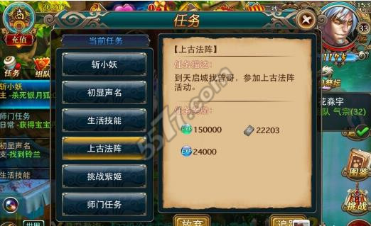 当玩家到达45级是,会出现许多活动。其中上古阵法是可以获得大量经验的,玩家可以在任务中找到,同时追踪这个任务。