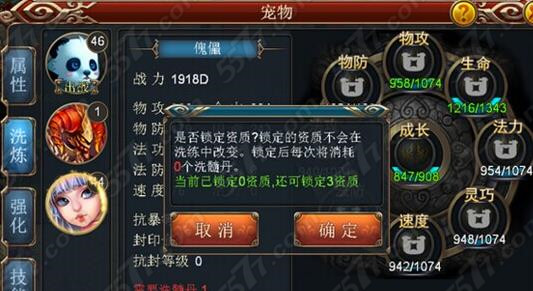 在炼化宠物的资质方面,个人建议把物功资质炼化成紫色或是金色。因为是想要一个强力的物攻宠,在物理攻击伤害方面是决不能马虎,必须要最好。而成长资质最好为紫色,为了以后宠物升级得到的所有资质有明显的效果提升。宠物每强化一级,都会提升所有资质一定的百分比。并强化到指定的等级会有宠物的称号哦。