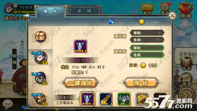 铁匠铺还提供一键强化功能,可以直接将一件装备的强化等级提升至和玩家的主角等级持平。
