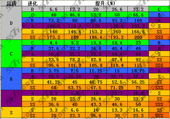 你用你的卡的现阶段进化的状况,乘以(1+剩余进化百分比)大概就是你卡牌最终SSS的成长属生。