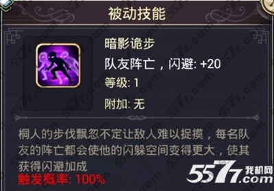 本质上是一个增强生存能力的技能,队友死亡,闪避+20,这意味着在后期队友全部死亡的时候,桐人的闪避能够增加80点,但对布阵要求非常高。