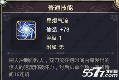 攻击后排的技能,偷袭伤害+73,技能动画特效酷炫,实战中用于切后排。