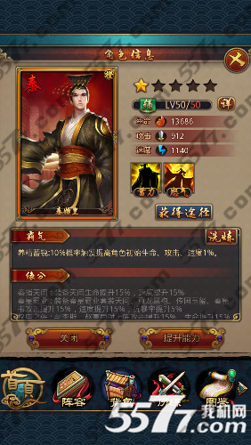 权臣之佐:与李斯,赵高同时上阵攻击提升15%,生命提升15%。