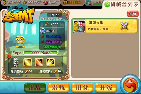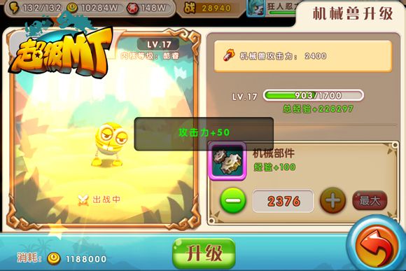 4、升级:使用【机械部件】和一定金币提升机械兽等级,同时也会增加机械兽的攻击力。
