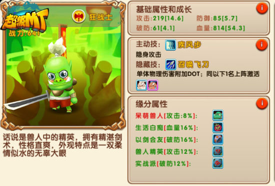 这个物攻小队主要由酒仙、小屠夫、一粒蛋、贱圣组成,其中酒仙和小屠夫分别为血战士,有着较高的生命值,而一粒蛋与贱圣为狂战士,可谓杀人机器,推荐放于后排,这样再来一个物理系的辅助职业,就构成一个强力的小分队。而贱圣和小屠夫的同时上阵还可以激活贱圣召唤飞刀的技能,对对方单体可造成125%物理伤害,并使其在7秒内再次造成143%物理伤害。