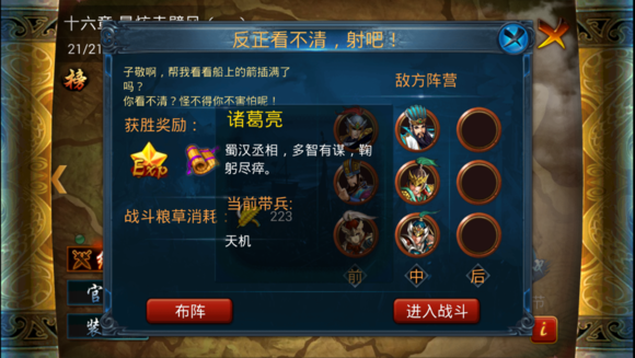 点评:诸葛亮是军团型武将,看上去像是一个反一切控制和技能伤害的单位,而且本身的攻击力也不低。