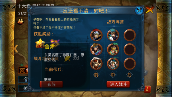 这关难点就是鲁肃快速回怒、诸葛亮频繁放技能(感觉是无限蓝条),输出暴表,而诸葛亮特技是技能免疫,开局昏睡拖延时间的办法根本用不了。