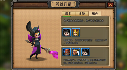 英雄阵容界面:展示英雄自身与单个神器的配合效果,以及英雄与其他英雄的配合效果。